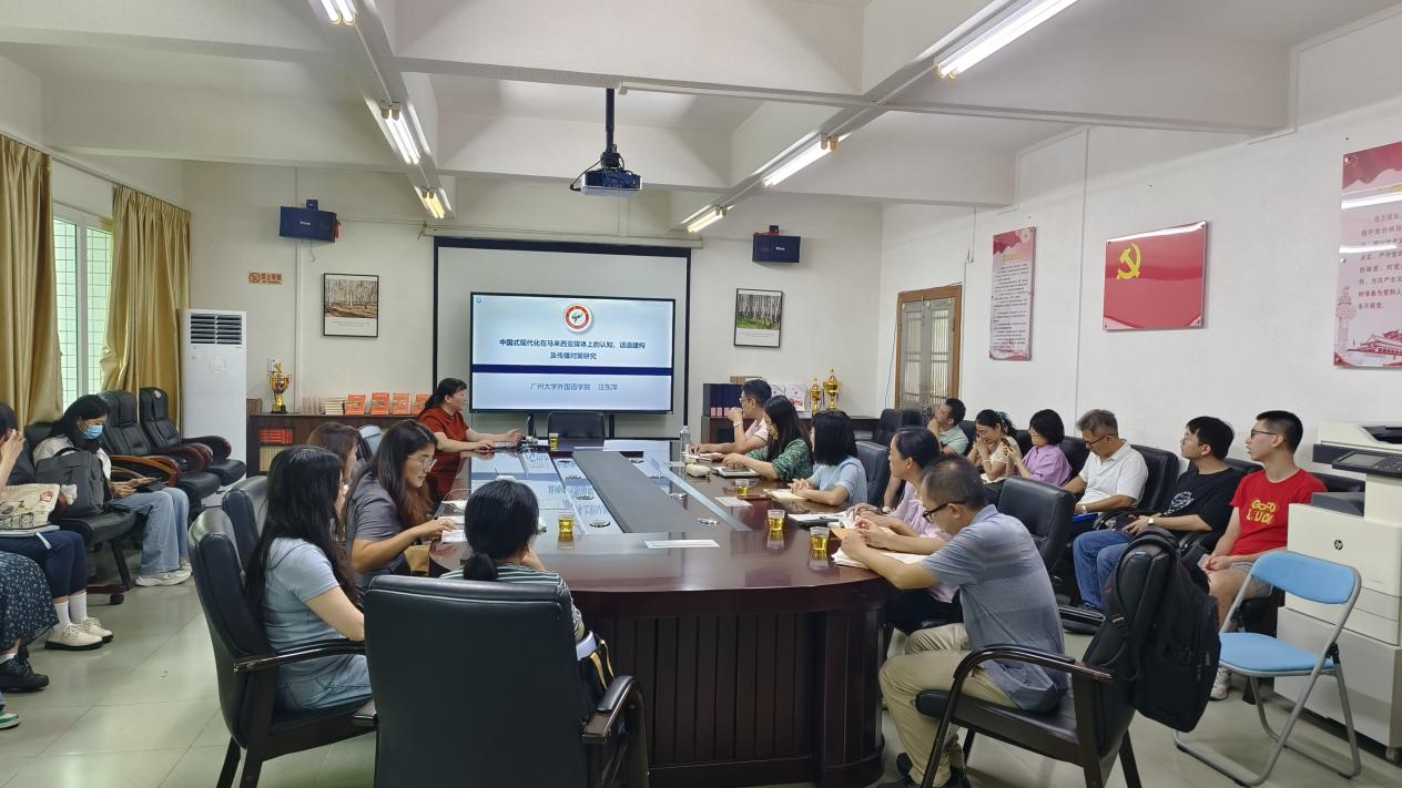 9月28日下午,广金外语论坛第73期在外国语言与文化学院会议室举行。广州大学汪东萍教授应邀作“马来西亚媒体视域下中国式现代化的话语建构”专题讲座,外国语言与文化学院科研骨干教师和翻译硕士研究生到场聆听。