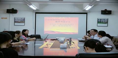 10月19日下午,广东金融学院翻译研究所和外文学院党总支联合举办《习近平谈治国理政》第二卷翻译研究沙龙。在学术沙龙上,翻译研究所负责人洪溪珧老师和学院部分师生分别以语言学或翻译学中的模糊修辞理论、文本类型理论、关联理论、生态翻译学、功能对等理论、释意论等理论为研究视角,对《习近平谈治国理政》第二卷的中文和英文版本进行了文本阐释与翻译讨论,交流了各自的研习报告。