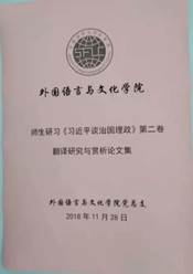 在外文学院党政班子统筹安排下,由广东金融学院翻译研究所负责人洪溪珧博士带领她教授的翻译专业学生,从今年暑期开始,对《习近平谈治国理政》第二卷的中文和英文版本进行了认真研读与翻译赏析,9位同学撰写了8篇翻译研究论文,并于外文学院师生演示分享各自的研读报告,研习活动富有成效,师生的研习成果业已汇编成册。