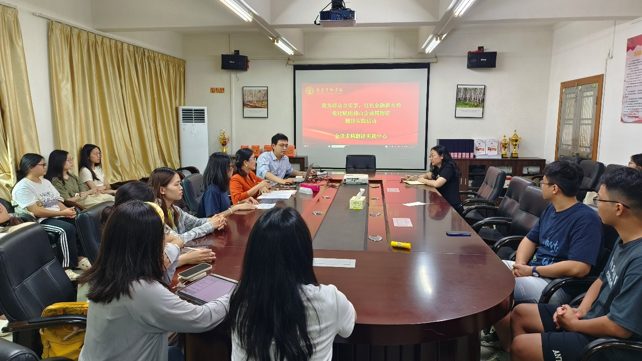 6月3日,外国语言与文化学院联合“金译求精”翻译实践中心,在学院会议室召开主题为“我为群众办实事,红色金融薪火传:党建赋能佛山市岭南金融博物馆翻译实践活动”的专题会议。会议旨在通过党建引领,推动翻译实践活动与思想政治教育深度融合,助力学生在实践中传承红色金融文化。