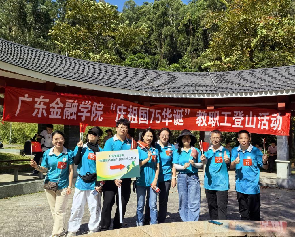 在刚刚结束的广东金融学院“庆祖国75华诞”教职工登山比赛中,外文学院工会代表队表现出色,荣获三等奖。外文学院工会代表队由9名教职工组成。比赛中,队员们团结协作,展现了外文学院教职工的毅力和朝气。