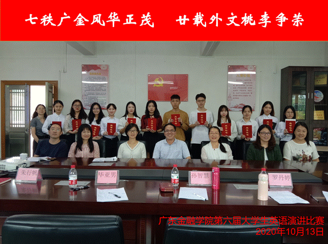 广东金融学院大学生英语演讲比赛迄今已经成功举办六届,激发了全校学生的英语学习热情,掀起一波波英语学习的高潮,获奖选手也成为同学们学习的榜样和目标,本次赛后,外文学院还将选派优秀选手代表我校参加“外研社·国才杯”大学生英语演讲比赛广东赛区总决赛,期待选手们再创佳绩。