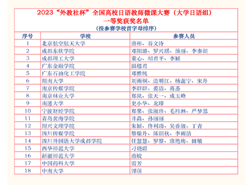 据悉,本次大赛有来自全国150余所高校的180个作品参加,由全国日语界权威专家评审。评审围绕选题设计、教学内容、作品规范、教学效果四个维度进行,经过多位评委对同一作品打分并采取平均分的方式选出最终结果。