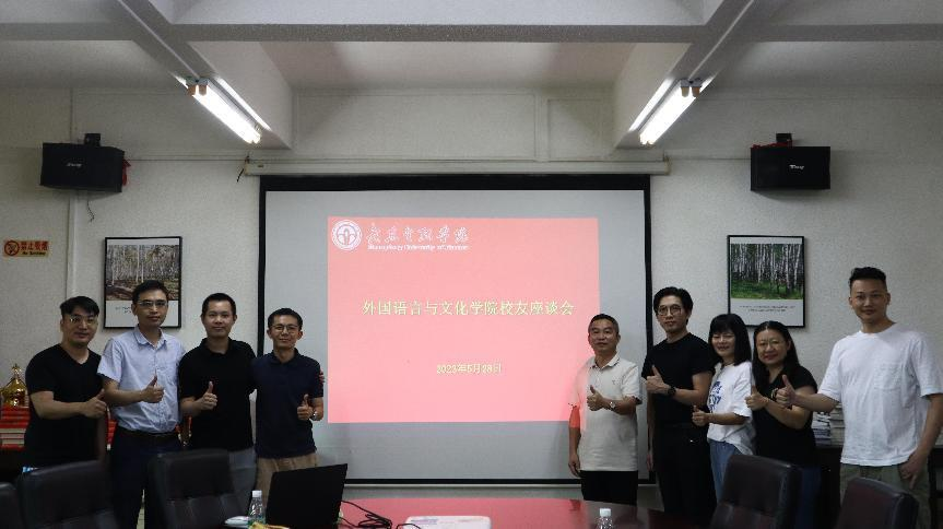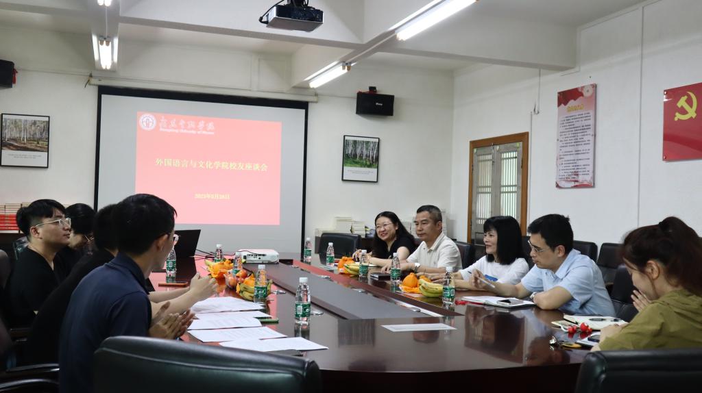 为推进学习贯彻习近平新时代中国特色社会主义思想主题教育走深走实,贯彻落实党中央、国务院关于高校毕业生就业创业工作的决策部署,推进就业育人,深化产教研融合,5月28日,外国语言与文化学院举行校友座谈会暨第三届“校友杯”篮球赛。外国语言与文化学院党总支黄庆雄书记、涂兵兰院长、王丹副书记、陈树坤副院长、邓粲士老师和李春蓉老师参加了座谈会。